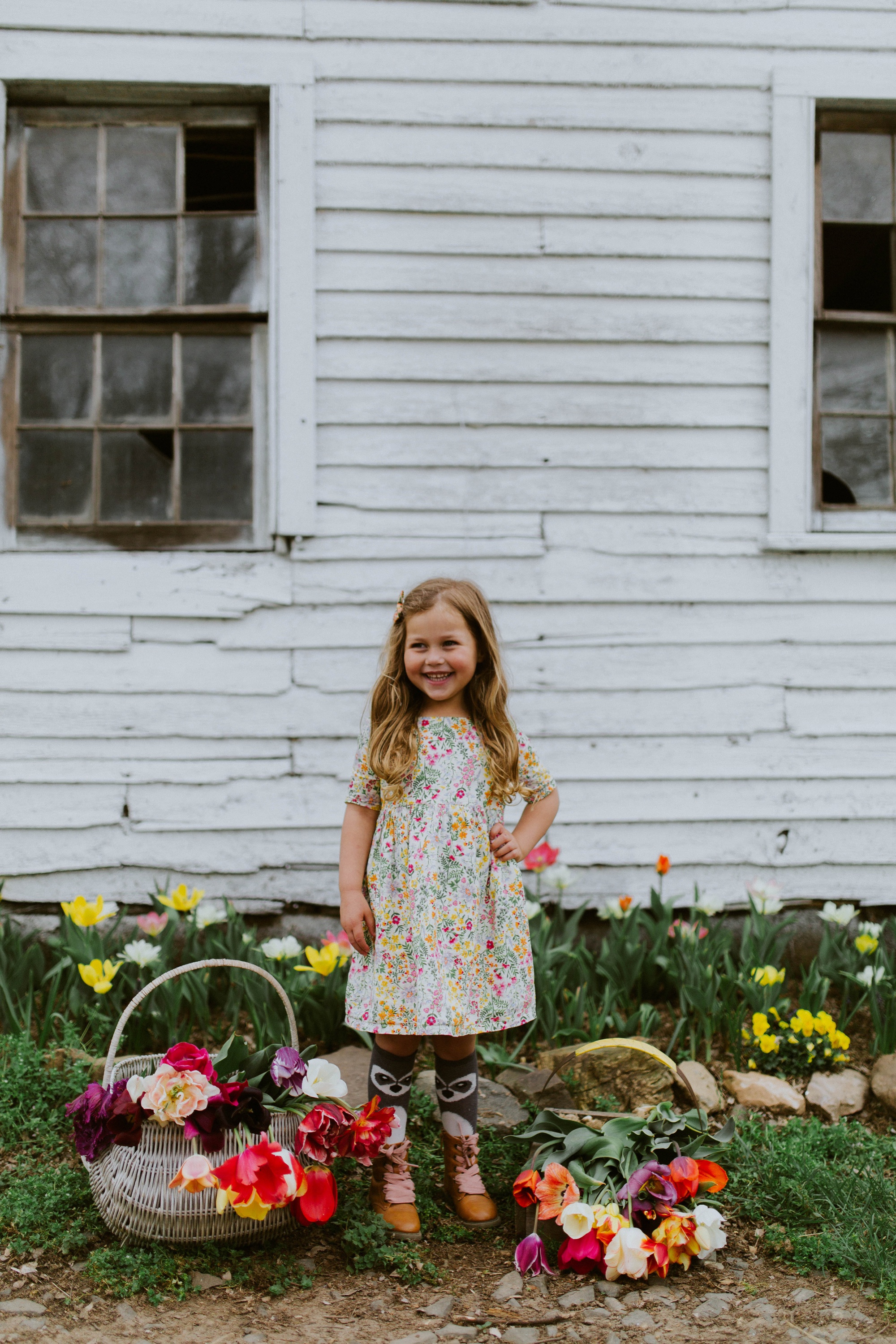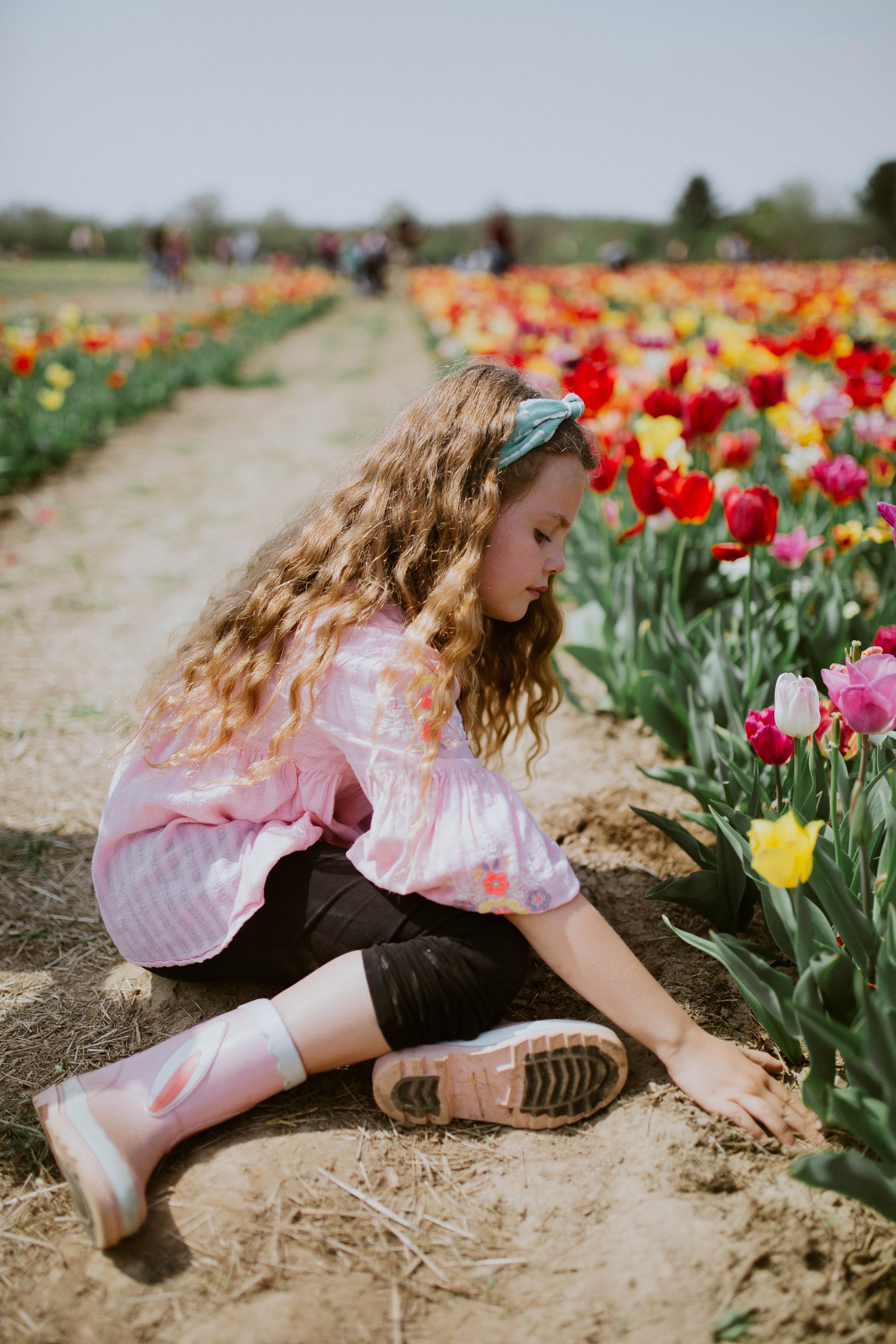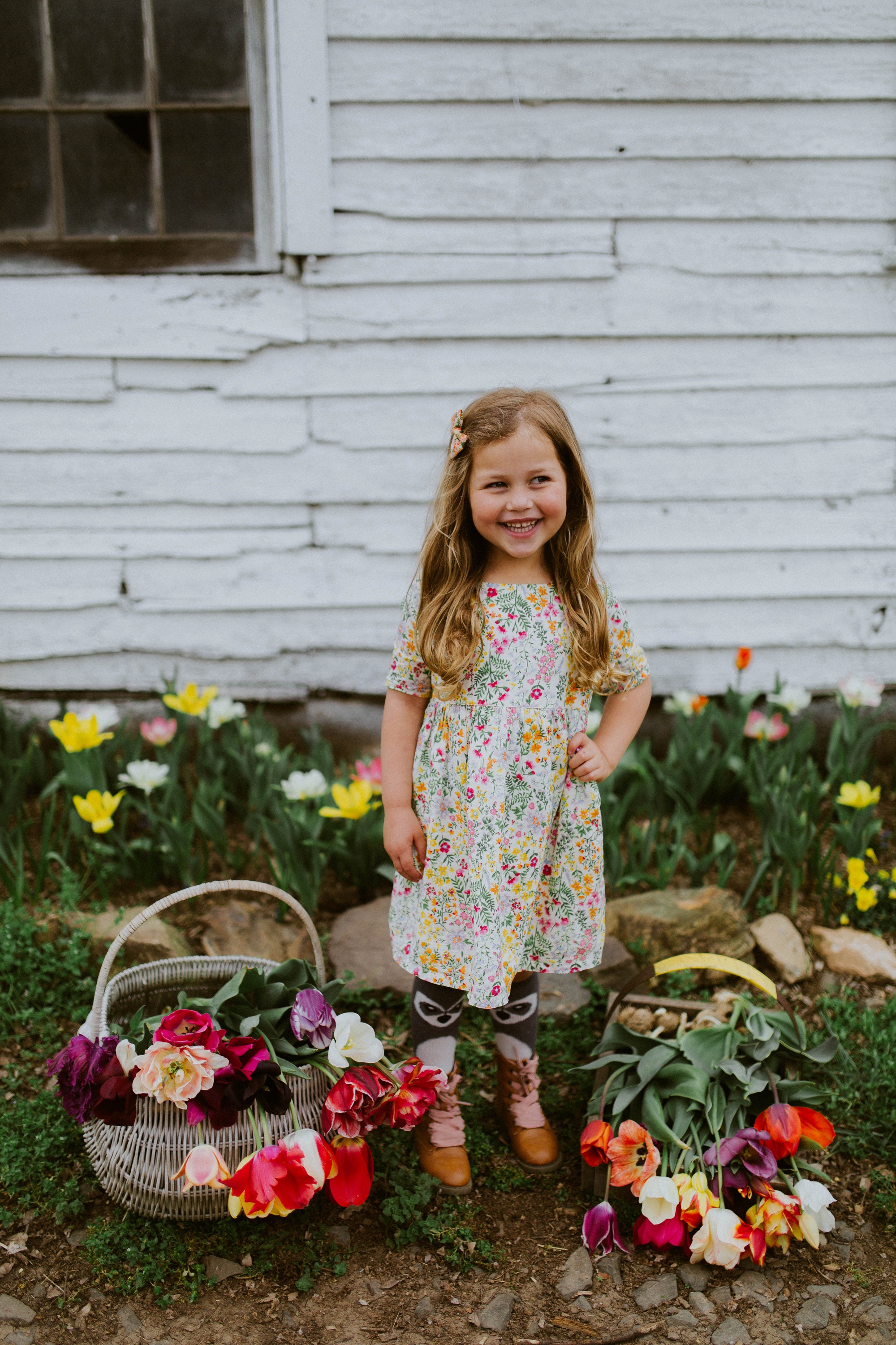 It was overcast AND super sunny that day. Kinda funny. Gracie got some sun on her cheeks and we all had a heck of a time digging the tulips out with their bulbs still attached. We plan on planting them in the fall for pretty flowers next spring at our own home!
