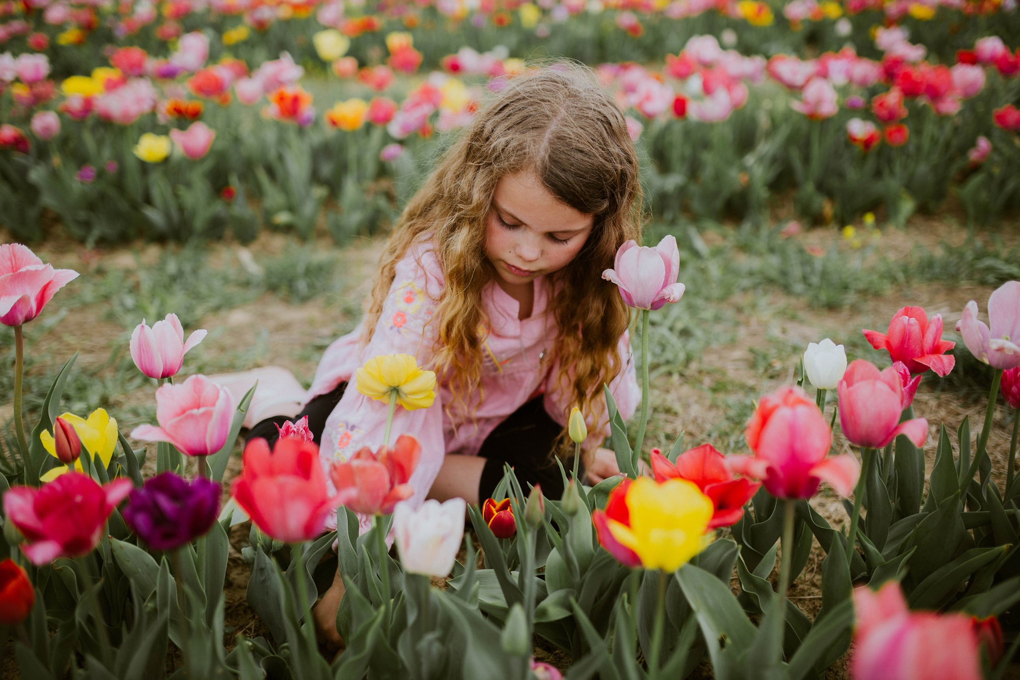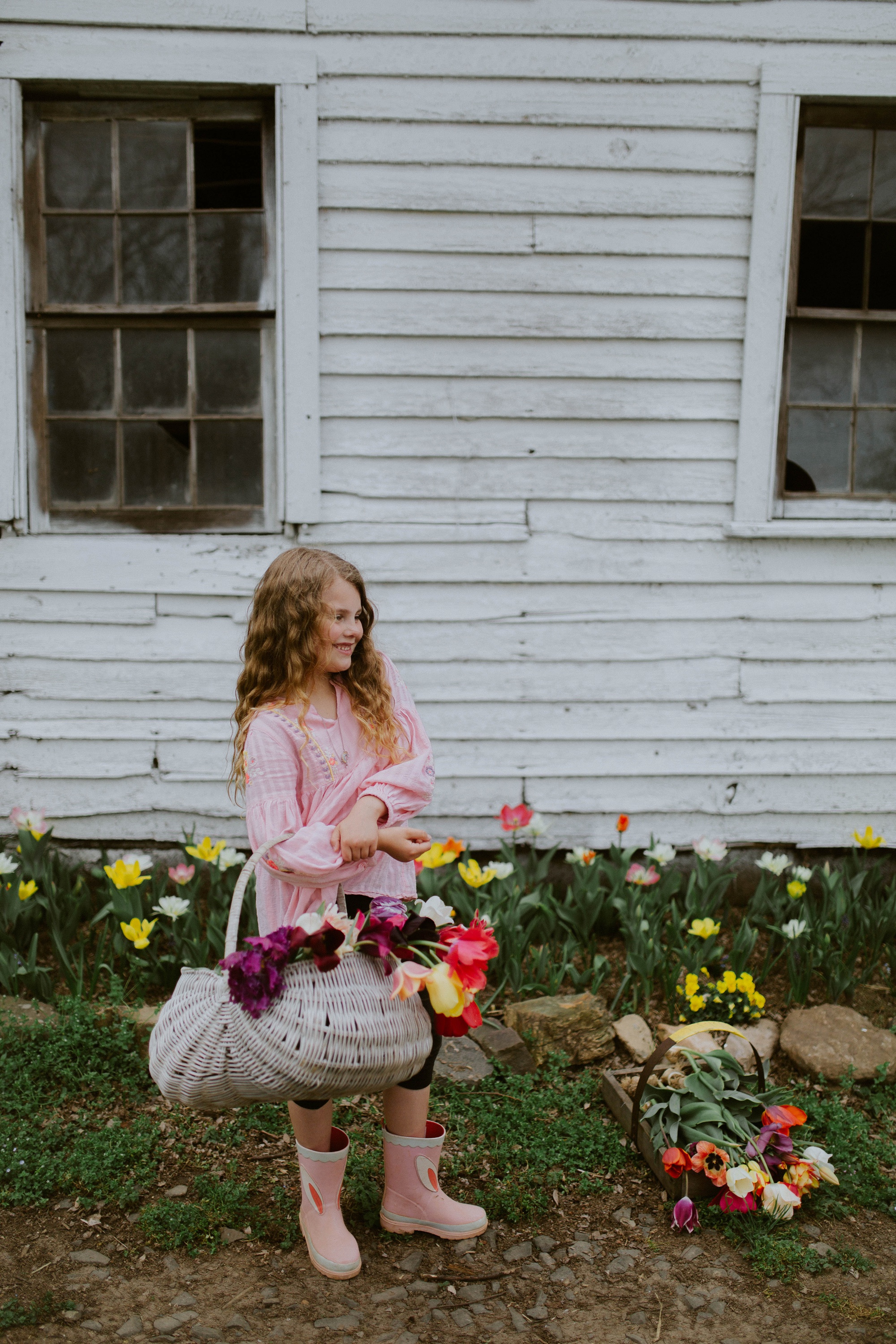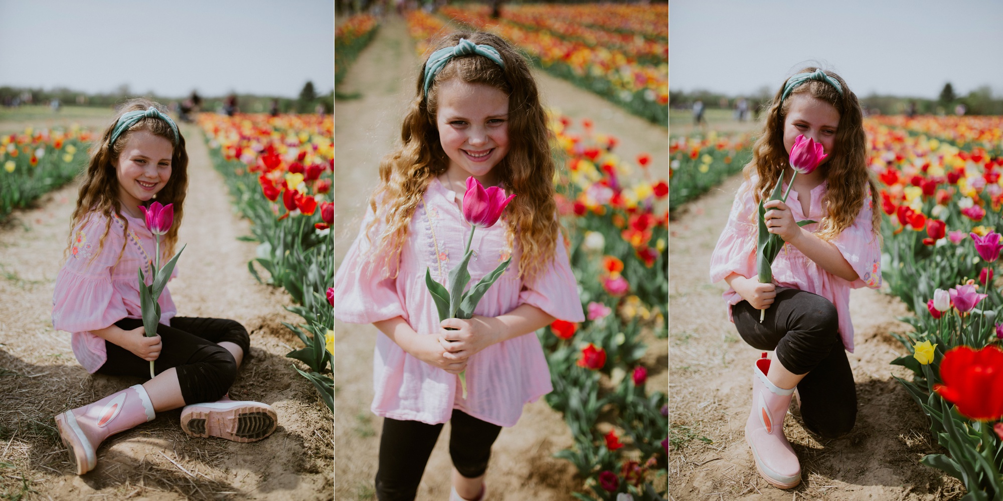 It was overcast AND super sunny that day. Kinda funny. Gracie got some sun on her cheeks and we all had a heck of a time digging the tulips out with their bulbs still attached. We plan on planting them in the fall for pretty flowers next spring at our own home!
